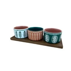 SEMA DESIGN Lot De 3 Coupelles En Grès Et Plateau Terracotta, Vert Et Blanc – Romance Vegetal