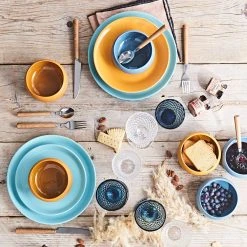 Venez découvrir notre Assiette plate Itya bleu d25cm de la marque à découvrir sur Fabrique de Styles.