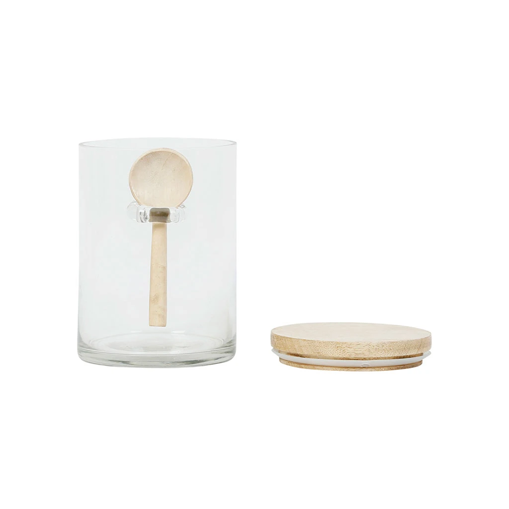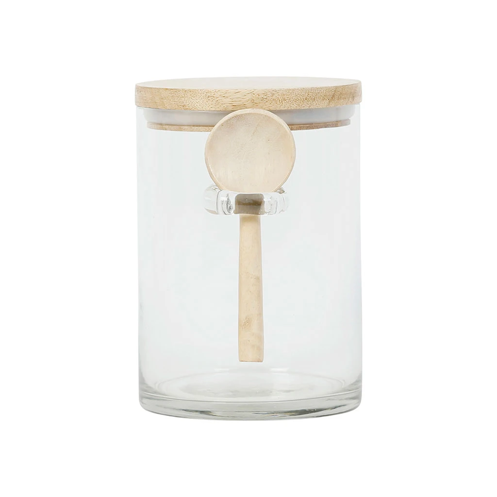 Venez découvrir notre Bocal avec cuillere et couvercle chez gaston naturel 80cl en verre et manguier de la marque Comptoir de Famille à découvrir sur Fabrique de Styles.