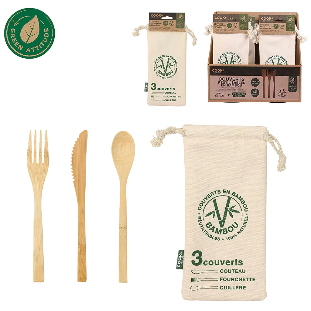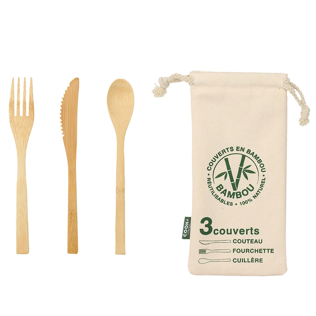 Venez découvrir notre 3 couverts réutilisables en bambou de la marque Cook conce à découvrir sur Fabrique de Styles