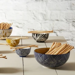 Venez découvrir notre Saladier x2 arty folk bleu et moutarde d23xh10cm gres de la marque SEMA Design à découvrir sur Fabrique de Styles.