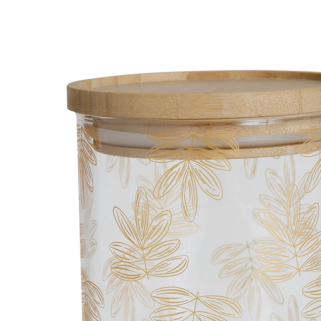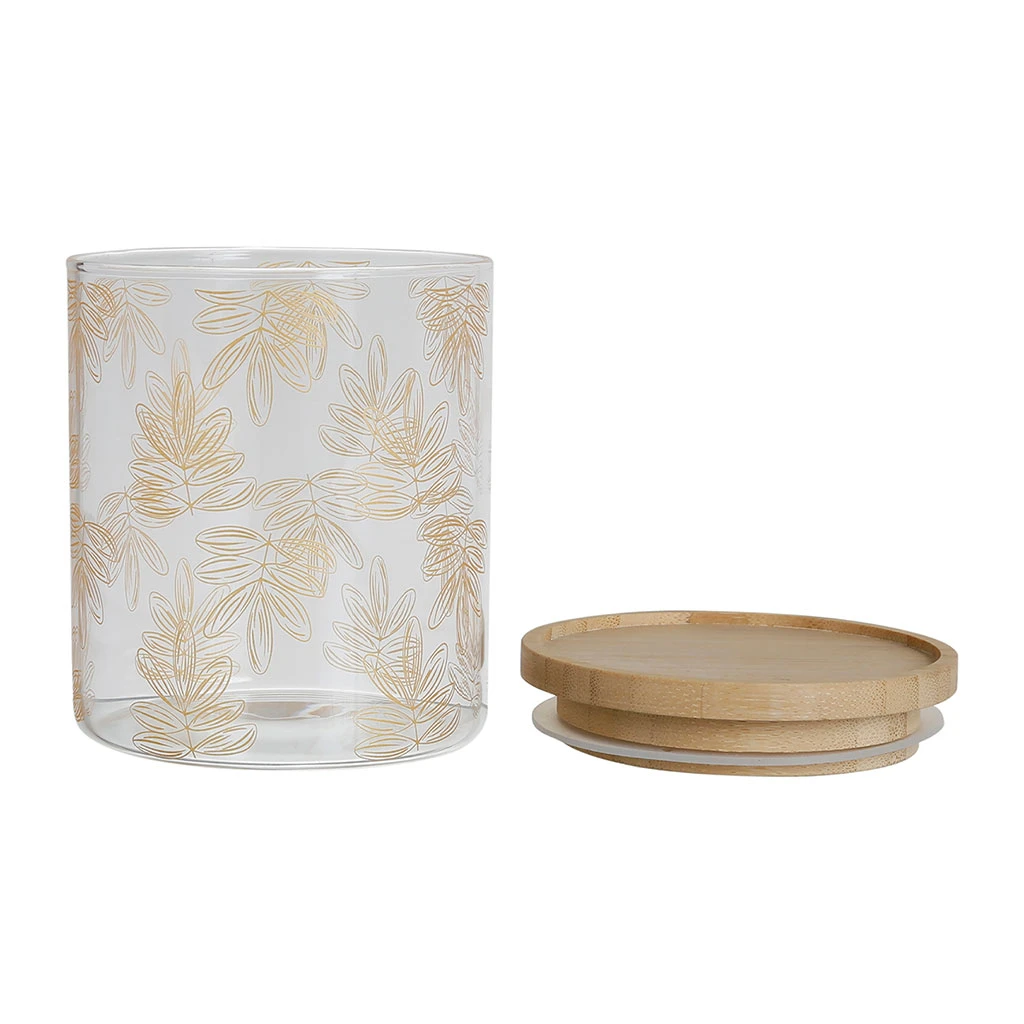 Venez découvrir notre Pot Flaural doré en verre avec couvercle en bambou D9.5Xh11Cm (modèle moyen) de la marque SEMA Design à découvrir sur Fabrique de Styles