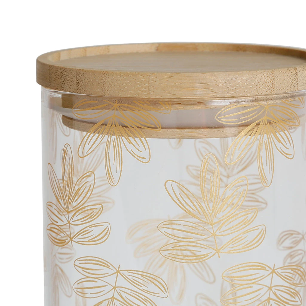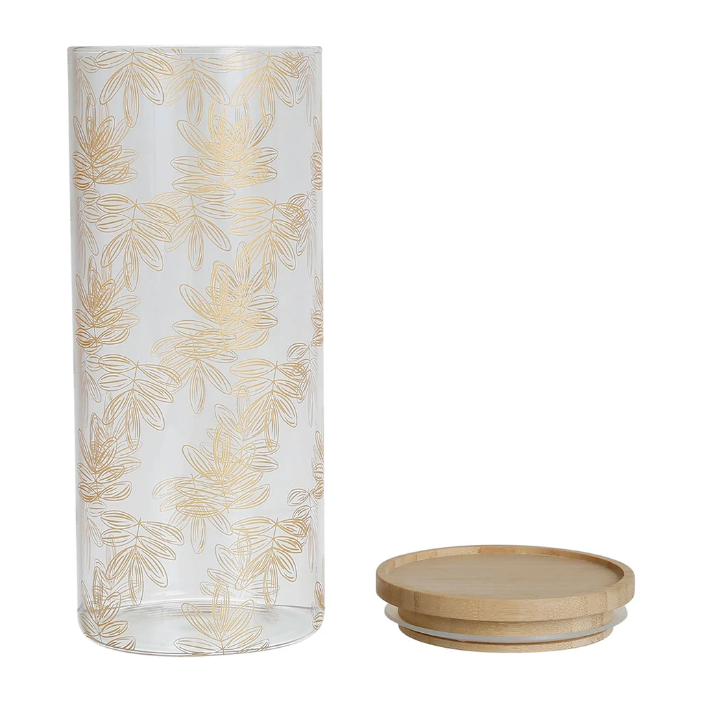 Venez découvrir notre Pot Flaural doré en verre avec couvercle en bambou D9.5Xh21Cm (grand modèle) de la marque SEMA Design à découvrir sur Fabrique de Styles